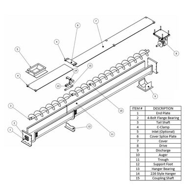 • U型槽設計:従来の円筒型螺栓輸送機よりも大きな容量を提供し,密閉管輸送機と比較して検査と清掃のためにより簡単にアクセスできます.
